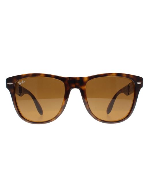 Ray-Ban Sunglasses Folding Wayfarer 4105 710 Havana Tortoise Brown 54mm are a folding version of one of the most recognisable and bestselling sunglass styles worldwide and are enormously popular among celebrities, musicians and artists. The distinctive angled design and thick frame are sure to make a statement and Ray-Ban are constantly using vibrant colours and patterns to update this classic and popular style. The lightweight acetate frame is comfortable and the Ray-Ban logo is displayed on the corner of the lens in addition to the sculpted winged temples. They fold in the bridge and in the middle of the temples to give a compact finish that folds nicely into a suitable sized pouch for easy storage. Colour: brown