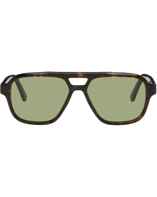 Handcrafted aviator-style acetate-frame sunglasses. · Green lenses · 100% UVA/UVB protection, category 2 · Integrated nose pads · Inset logo hardware and embossed logo at temples · Core wires · Includes pouch · Size: 56.15 145 Supplier color: Havana Colour: green