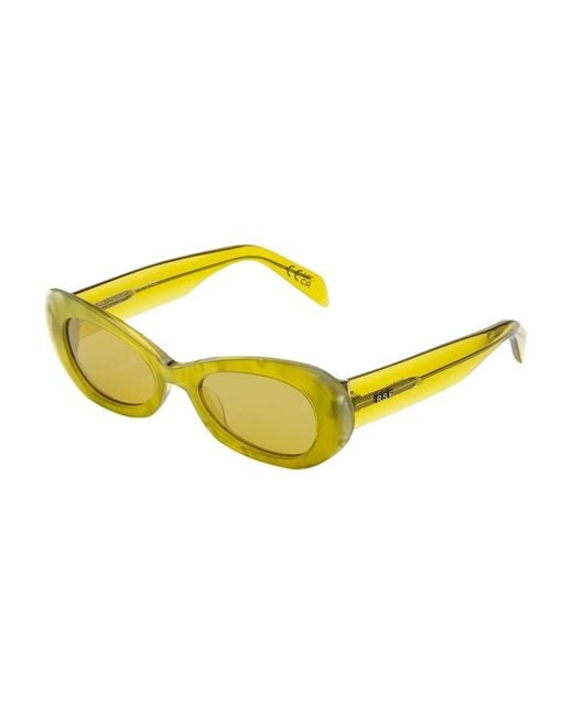 Elevate your style with these Retrosuperfuture sunglasses. Crafted from high-quality Italian acetate in a unique combination of acid yellow crystal and psychedelic acid yellow fusion. Featuring Zeiss lenses with a base 6 frame, these handcrafted sunglasses from Italy are a statement piece. Cal 52 bridge 19 arm 145 in a glossy Green Oval design. Colour: yellow
