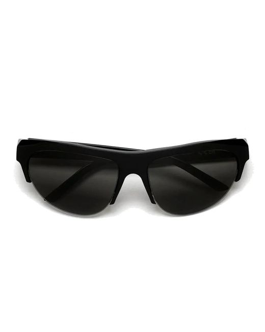 Retrosuperfuture Ora IZ8 sunglasses pair a glossy black half-rim acetate frame with Zeiss black lenses for reliable sun protection and refined optical clarity, creating a bold, contemporary accessory with a sculpted silhouette. Key attributes: Black | Nero | Acetate | Zeiss black lenses | Excellent sun protection | Superior optical clarity | Lightweight yet sturdy construction | Comfort-oriented temple design | Half-rim acetate frame | Irregular sculpted shape | Glossy black finish | Contemporary bold aesthetic | Composition & care: Acetate Colour: black