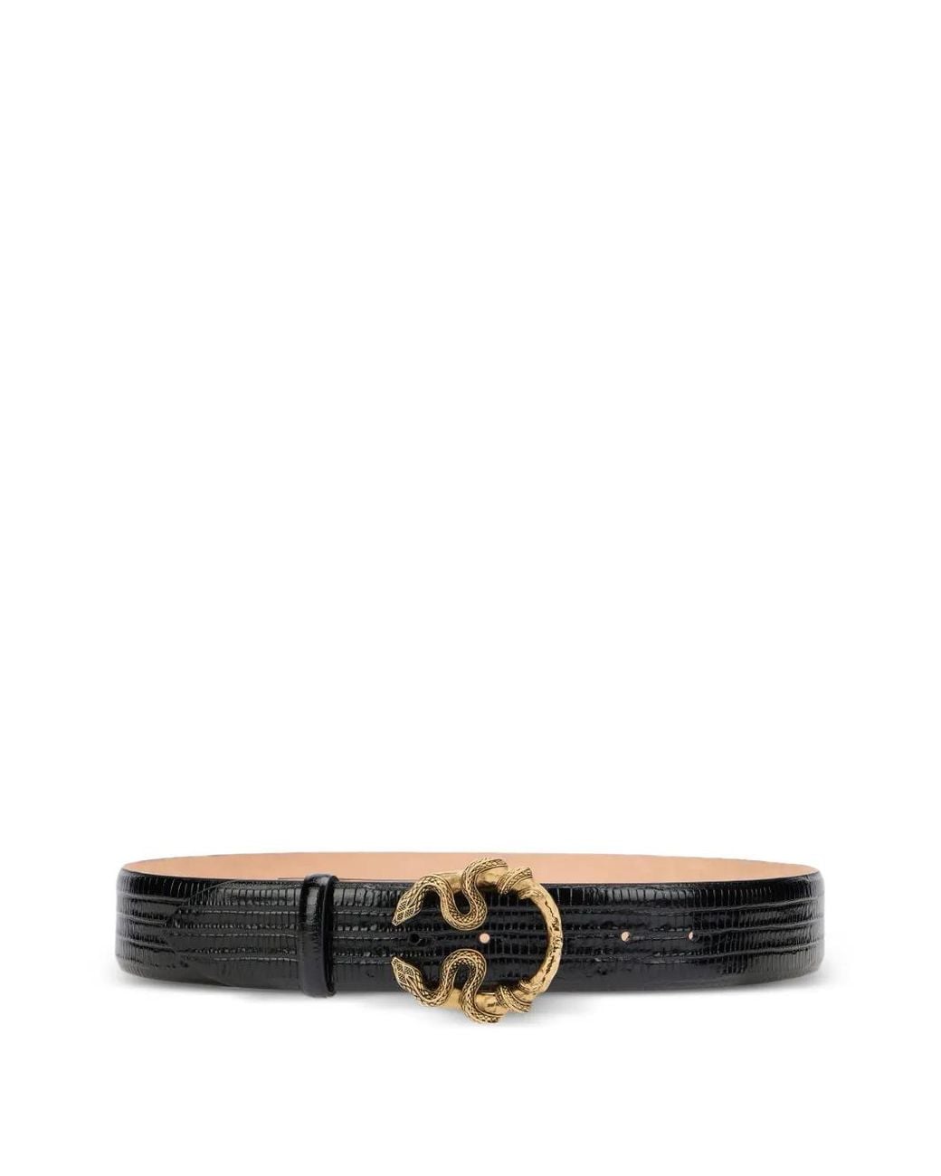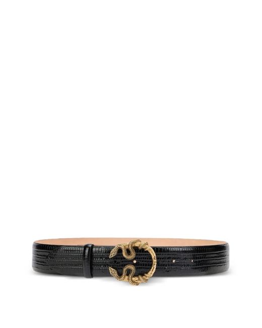 Belt With Cobra Print And Snake Buckle - Black