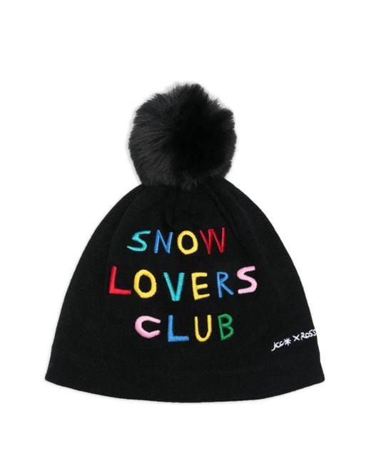 Women's Black X Jcc Pompom-Detail Embroidered Beanie