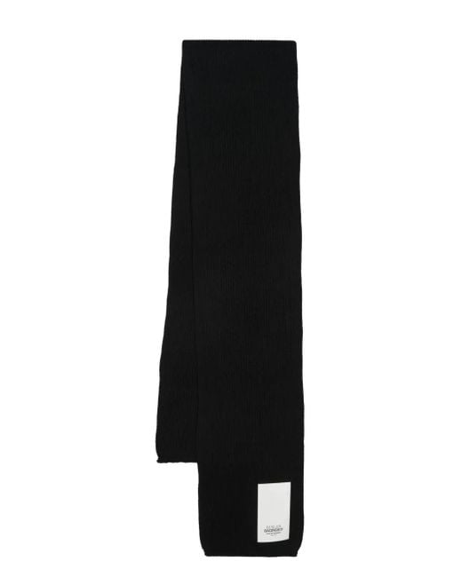 Black knitted construction ribbed knit logo patch to the front wraparound style rectangle shape Size: One Size. Gender: Female. Material:Viscose/Elastane/Wool/Nylon/Cotton. Colour: black