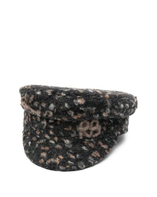 Brown speckled pattern flat crown short brim wool embroidered detail Size: S. Gender: Female. Material:Wool. Colour: black