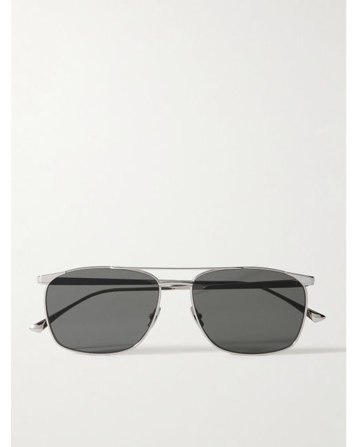 SAINT LAURENT Eyewear's sunglasses have squared-off frames that nod to classic aviator styles. Made from silver-tone metal, they're polished to a high shine and have a double bridge. Don't miss the logos engraved along the slim arms. Colour: grey