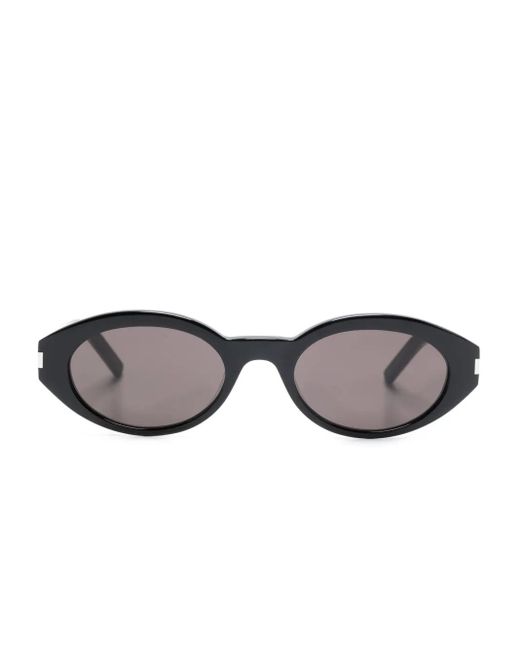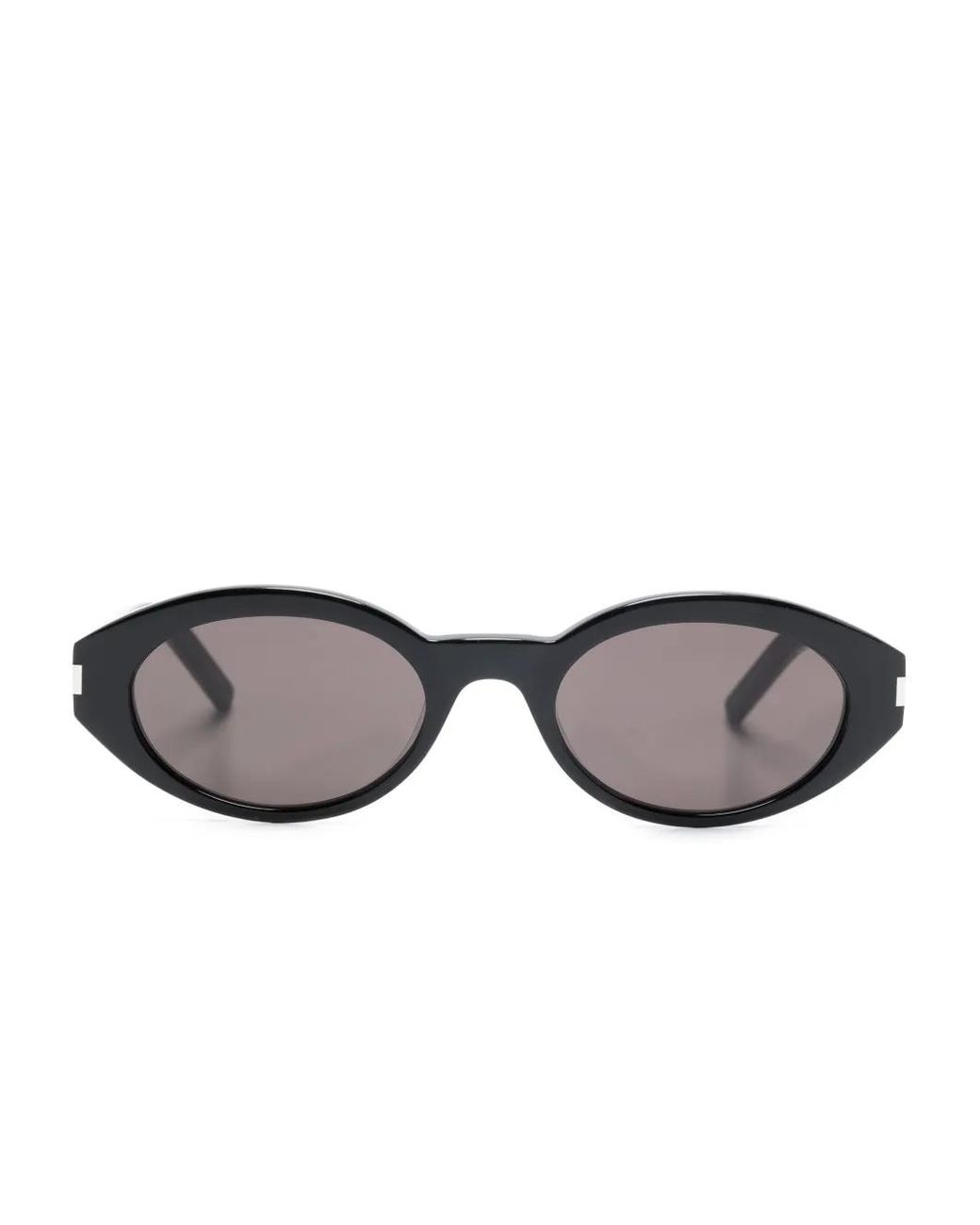 Black acetate oval frame UV-protective grey tinted lenses logo-engraved arm straight arms with curved tips These glasses come with a protective case. Size: One Size. Gender: Unisex. Material:Acetate. Colour: black