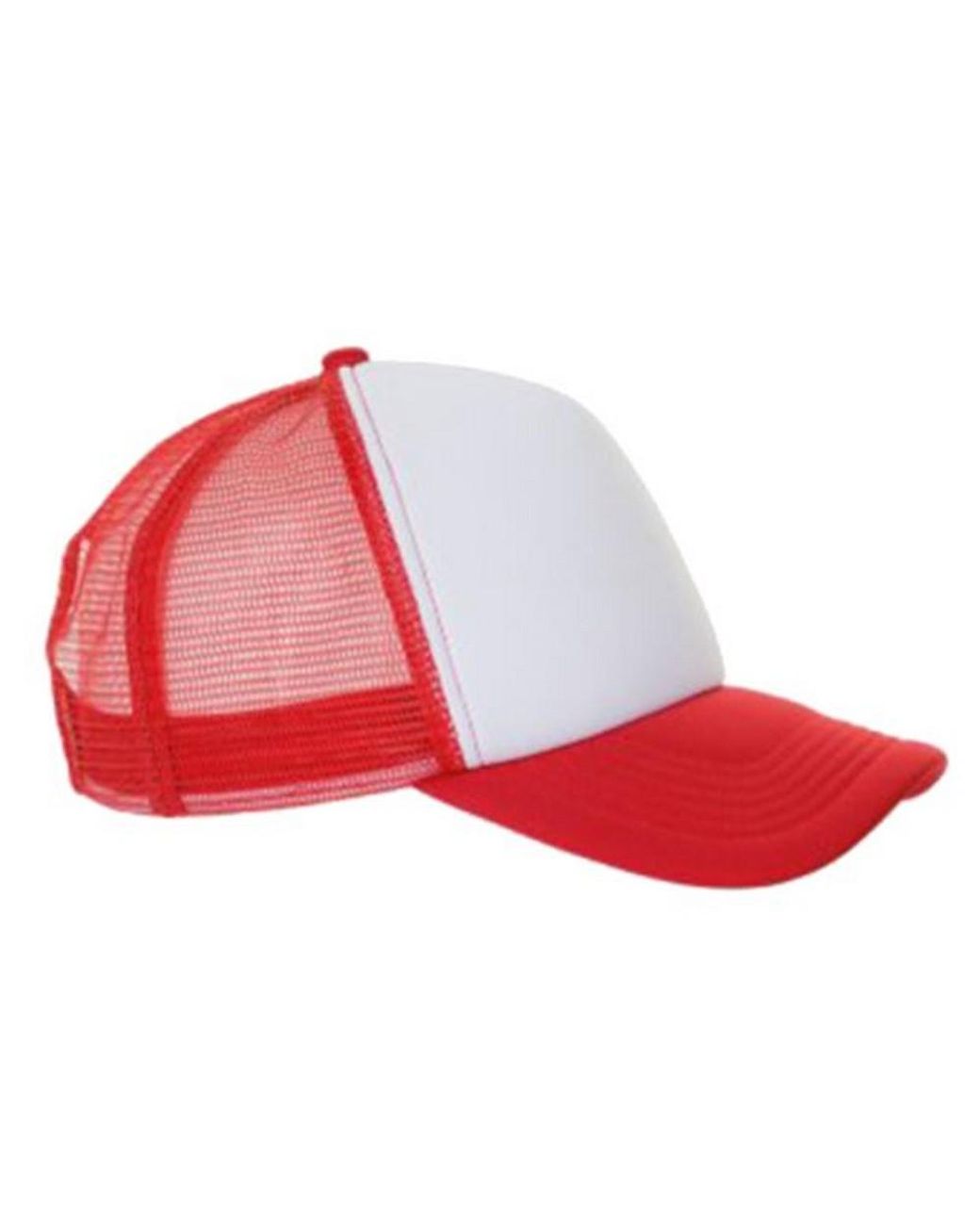 Unisex cap. 5 panel. Mesh cap. Adjustable plastic fastening. Fabric: 100% Polyester. Colour: red