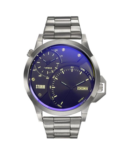 The Storm Avalonic is a bold and daring timepiece that is sure to get you noticed. This dual time watch features industrial detailing in a large case. The slate strap and case are made from stainless steel. It is water resistant to 50m and has a day/date feature. Storm's signature lazer glass is iridescent and may appear different shades of red under different light. Storm watches are made from high quality sustainable materials which are responsibly sourced and recyclable. Movement: Quartz Battery: Standard Case Material: Stainless Steel Water Resistance: 50m Lens: Mineral Glass Caseback: Stainless Steel Band Type: Stainless Steel Clasp Type: Single Fold Safety Steel Clasp Colour: multicolour