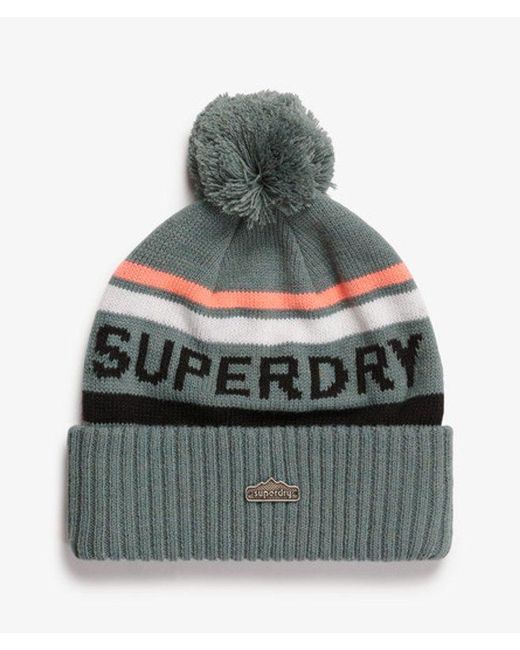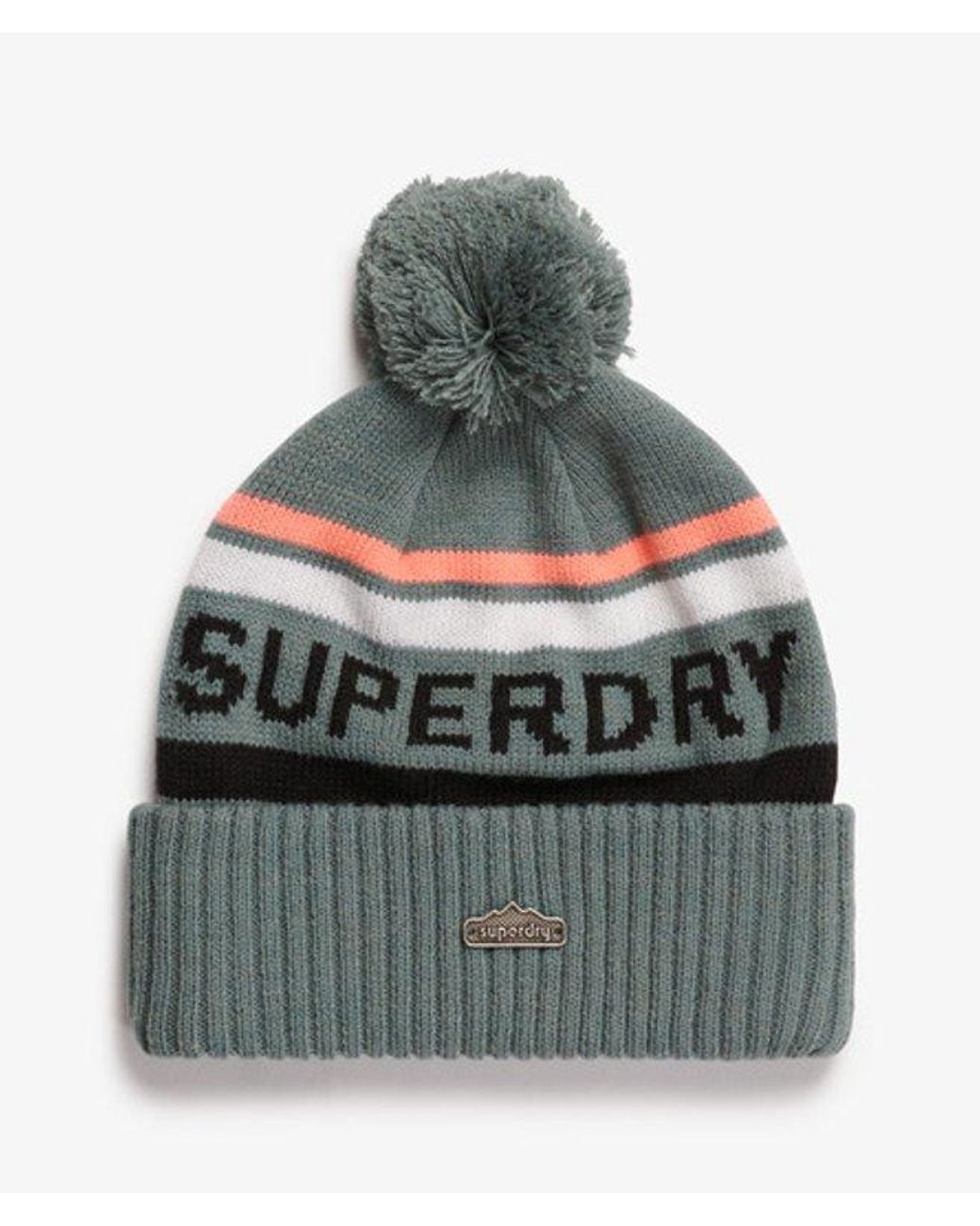 Pom Pom Roll up hem Knitted logo The Superdry Logo Knit Beanie Hat is a reliable, soft accessory that seamlessly blends into your day-to-day outfit. This winter staple is perfect to finishing off any cold-weather fit, keeping the chill out whilst maintaining your fashion-forward look. Colour: grey