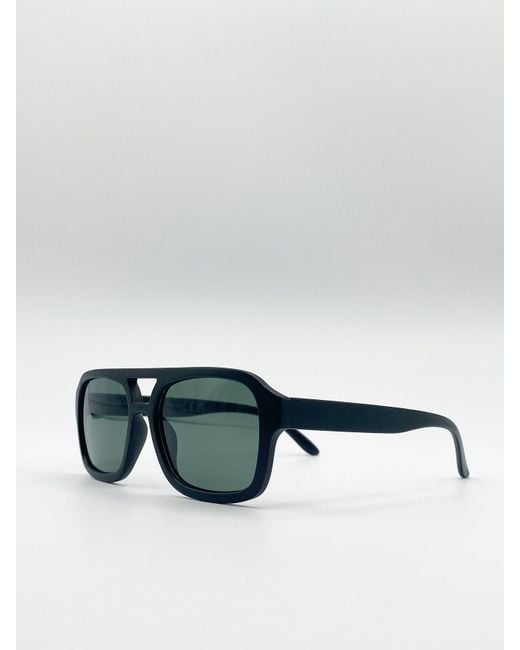 70's Navigator Sunglasses In Matte Black Frame Colour: Matte Black Lens Colour: Green Mono Frame Material: Plastic One Size FDA Approved UV 400 PROTECTION IN ACCORDANCE WITH 89/686/EEC BS EN ISO 123-1:2013 SKU: SG90632051