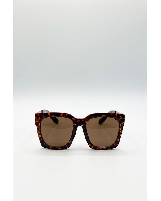 Women's Brown Oversized Sunglasses With Chain Detail
