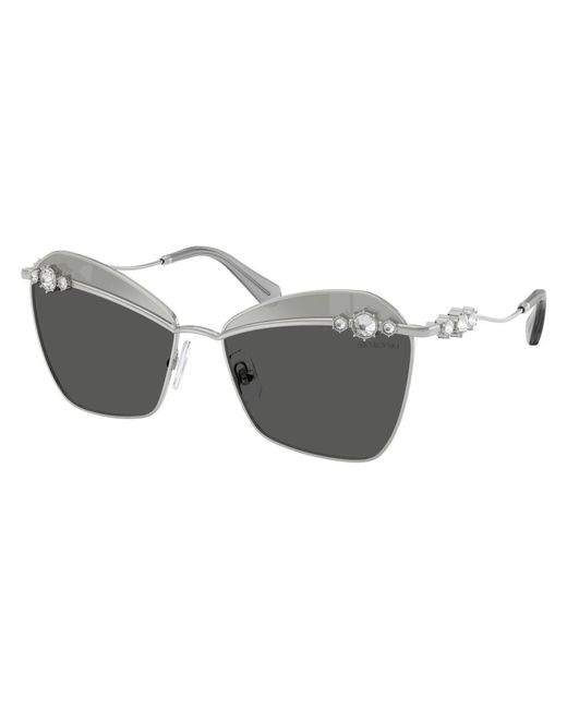 Swarovski Sk 7040 Sunglasses pair a crystal-adorned brow bar with a mirrored upper lens for a refined, statement look suitable for everyday wear. Key attributes: Grey | Argento | Metal | Mirror finish on upper lens | Crystal-adorned brow bar | Mirrored upper lens | Curved temples | Dimensions & fit: Lens width: 57 mm | Bridge: 16 mm | Temple length: 140 mm | Lens height: 51 mm | Composition & care: Metal | Polyamide | Crystals Colour: grey