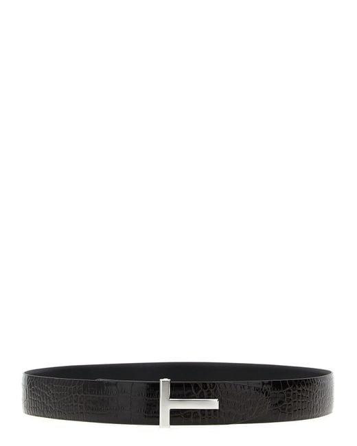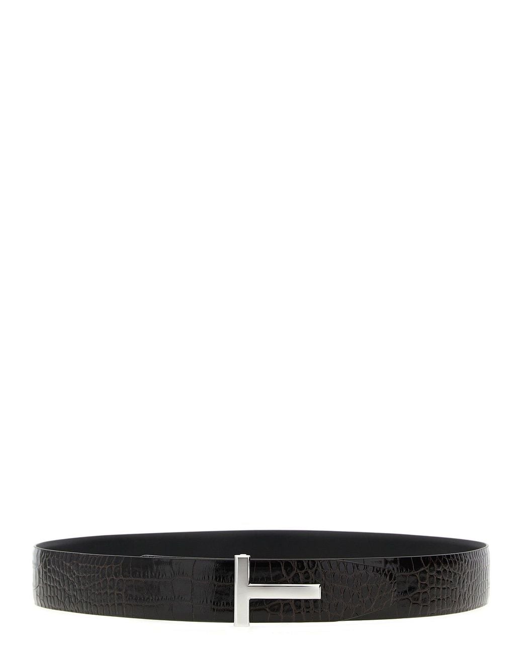 Reversible belt in crocodile print shiny leather and matte smooth leather, metal 'T' logo buckle.Side A: shiny crocodile print leatherSide B: smooth matte leatherSpecificationValueBrandTOM FORDComposition100% calfskin leather (Bos Taurus)Made InItalySize & FitH 4 cmColorBrownGenderMenSeasonFall Winter 2025/2026