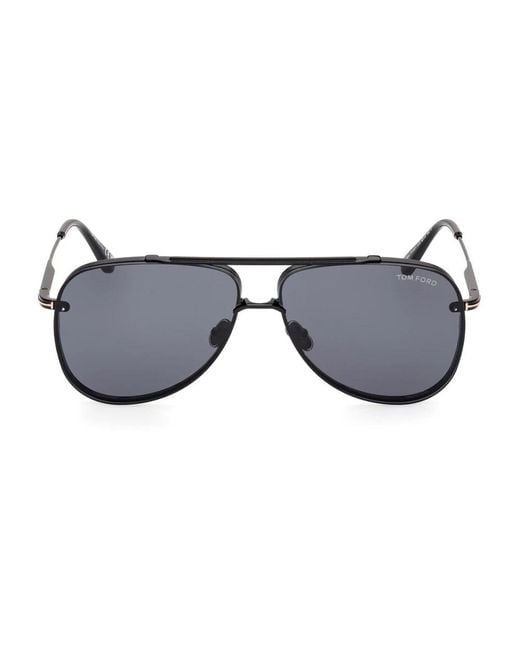 Elevate your style with the Leon Sunglasses by Tom Ford. These sunglasses feature a classic pilot shape crafted from metal, offering a timeless look with a modern twist. Key attributes: Black | Grey | Metal | 100% UV protection | Non-Polarized | Shiny metal frame | T logo on the temples | Colour: grey