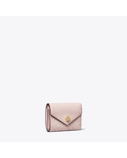 Women's Pink T Monogram Contrast Embossed Small Envelope Wallet, One Size