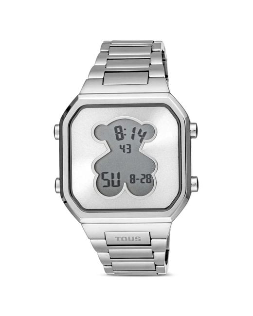 Silver-tone dial square case digital dial digital display stainless steel bezel push crown quartz movement water resistant up to 3 ATM This item comes with a standard one-year warranty from the boutique. Size: One Size. Gender: Female. Material:stainless steel/Crystal.