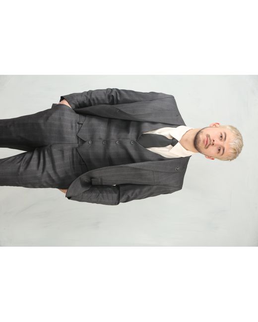 Men's Black 3 Piece Prince Of Wales Charcoal Suit Workwear