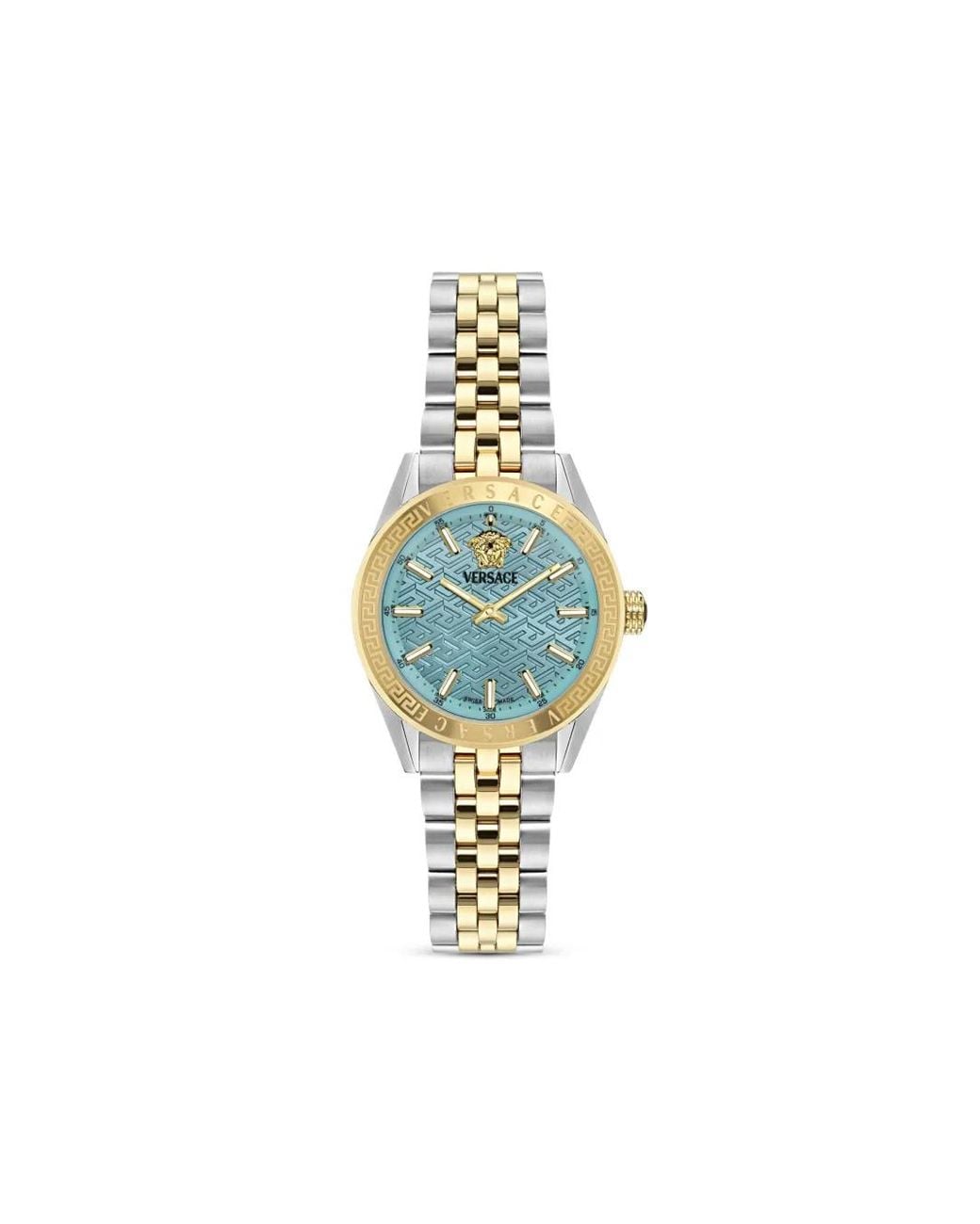 36mm stainless steel quartz movement baton dial baton hands signature Greca detailing Medusa Head motif round face screw-down crown engraved bezel stainless steel link bracelet clasp fastening This item comes with a standard one-year warranty from the brand. Size: One Size. Gender: Female. Material:Sapphire Crystal/stainless steel. Colour: blue