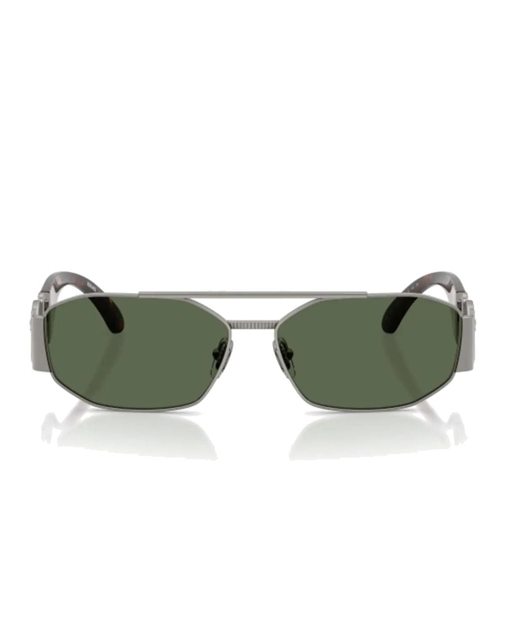 The Versace VE2287 100171 sunglasses represent a perfect fusion of strong character and contemporary luxury. The gunmetal-colored frame with an irregular shape gives a bold and sophisticated masculine aesthetic, while the dark green lenses ensure excellent UV protection and a distinctive look. The temples, made partly of havana acetate, add an elegant material contrast that enhances the design details. The Medusa logo, an iconic symbol of Versace, stands out on the temples as an emblem of power and style. Perfect for the modern man who loves to stand out with elegance, these sunglasses combine quality, personality, and the unmistakable charm of the Italian brand. Colour: green
