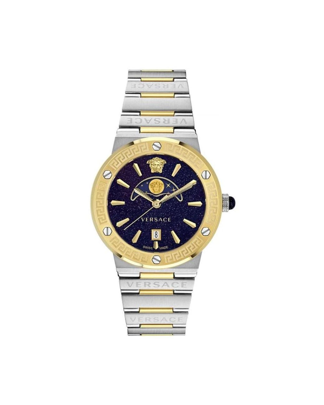 Versace presents the Stainless Steel Dress Watch with Minimalist Design, a streamlined timepiece that pairs formal polish with everyday versatility. Its clean lines and quality stainless steel construction make it suitable for both dress and casual settings. Key attributes: Grey | Stainless steel | Durable construction | Minimalist design | Sleek profile | Composition & care: Stainless steel | Wipe clean with a soft cloth. Colour: metallic