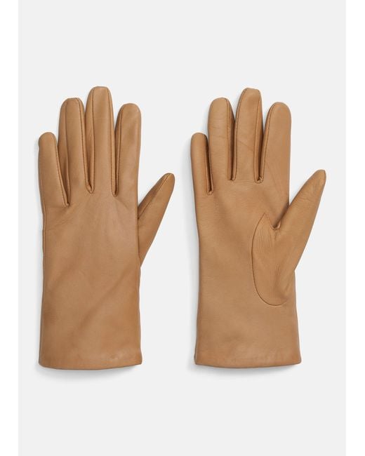 Lined in sumptuous cashmere, these buttery leather gloves feel like bits of bliss in the throes of winter. Colour: white