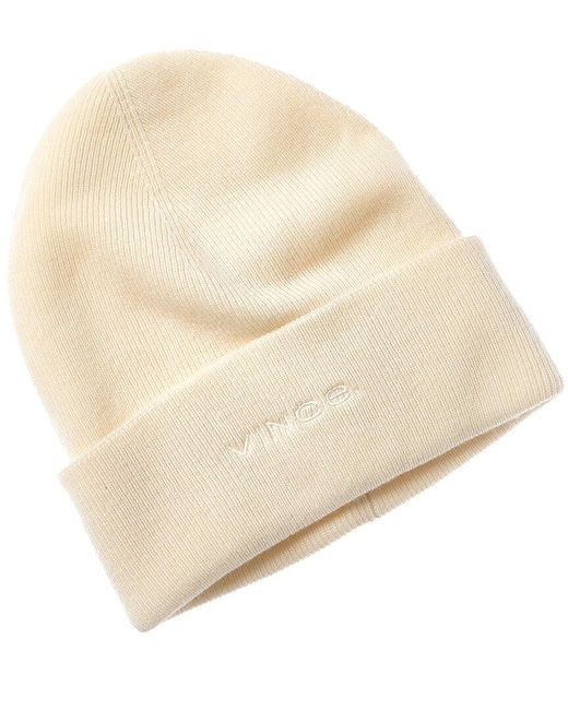 About the brand: Inspired by the natural beauty of California, Vince is a master of simplicity and laid-back staples. From understated knitwear to tailored essentials, Vince's casual cool vibes are simply timeless. Color/pattern: ivory Design details: embroidered logo Measures 9in from top of hat to hem This style is packable 90% wool, 10% cashmere Dry clean only Imported Please note: All measurements were taken by hand and are approximate; slight variations may occur. Colour: natural