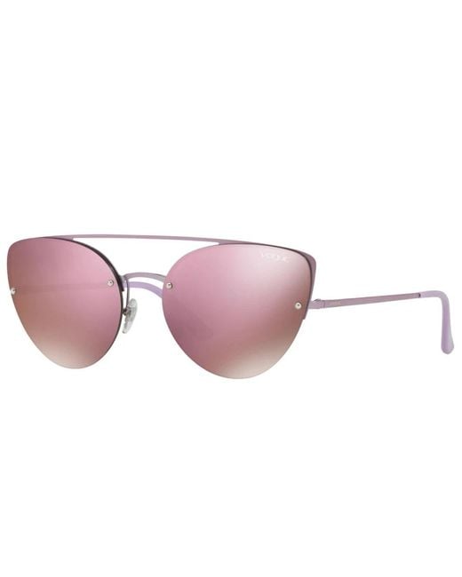 Introducing Vogue Women's Sunglasses, featuring a sleek metal frame in a stunning Gold-Black colour combination. The cat-eye shape adds a touch of elegance to any outfit. The lenses are a stylish Grey shade, providing 100% UV protection and anti-reflective properties. The metal temples are adorned with the brand's name and finished with acetate tips. With lens dimensions of 45mm in height and 57mm in width, a bridge width of 18mm, and temple length of 135mm, these sunglasses offer a comfortable fit. Each pair is delivered in its original case. For maintenance, simply clean the glasses with soap and water, and avoid using dirty or abrasive cloths that may affect the filters. Ensure to use only original accessories and spare parts. Colour: pink