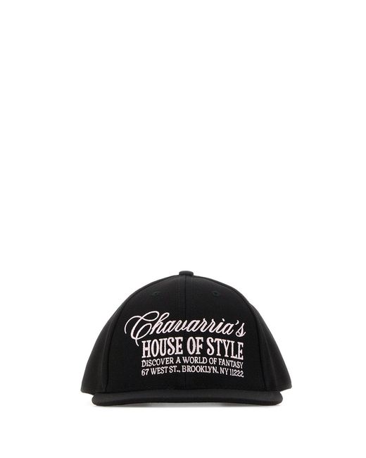 Baseball cap realized in canvas characterized by logoed embroidery at the front. Flat visor. Ventilation holes. Adjustable strap with metal buckle at the back. Unlined. Colour: black
