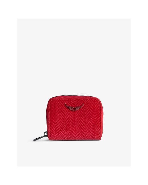 Women's Red Wing-Embellished Embossed-Leather Zip-Around Wallet