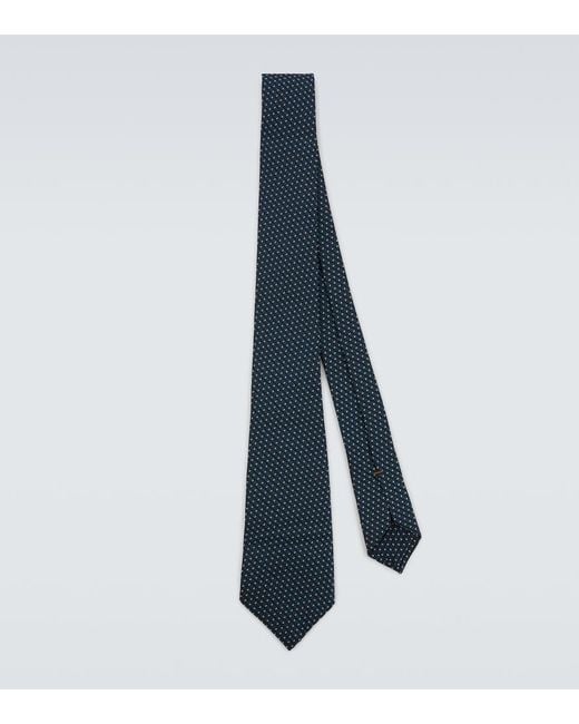 Geometric-Pattern Silk Tie - Blue