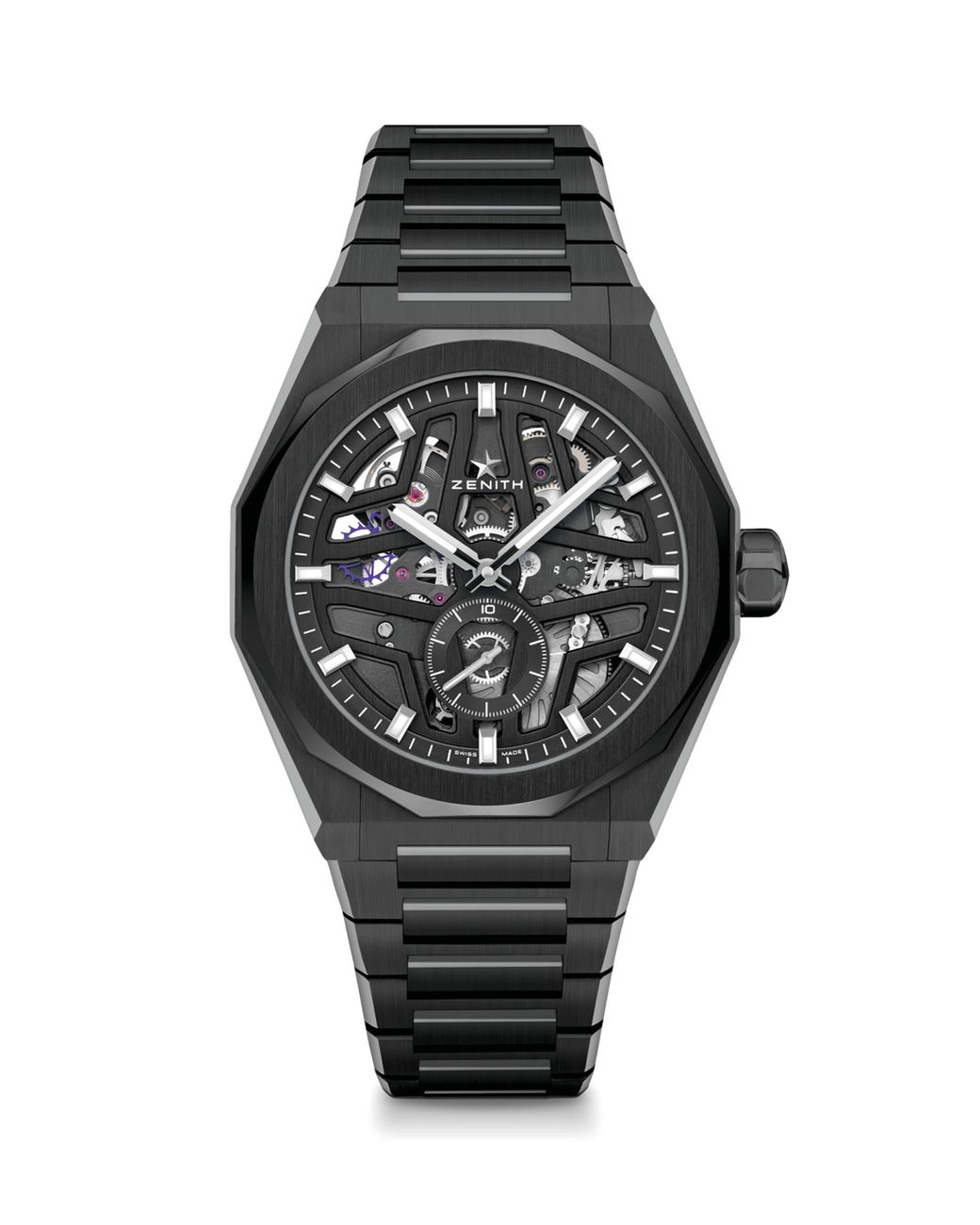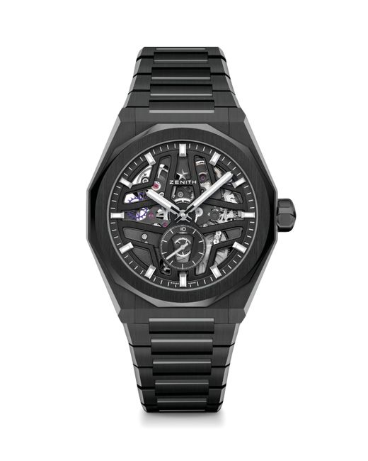 Zenith’s Defy Skyline watch is designed with a specific man in mind: he who chooses to forge his own path and climb to unexplored territories. Once there, he’ll look up at a night’s sky blanketed with stars – much like the four-pointed skeleton star that covers this watch’s dial. Add this timepiece to your collection and admire the case’s geometric form, which reinterprets the watchmaker’s early Defy models in a new, modern way. Colour: grey