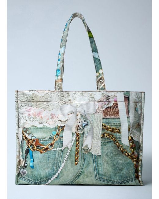 Men's Blue Logo Print Tote Bag