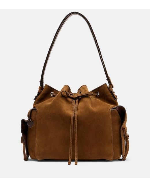 Women's Brown Suede Bucket Bag