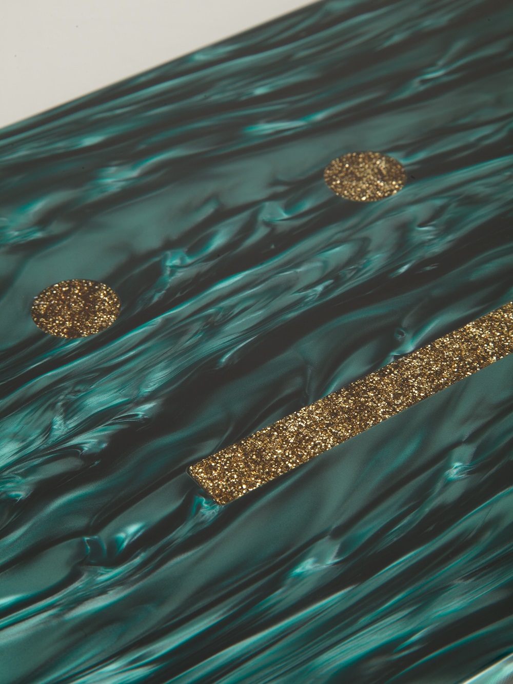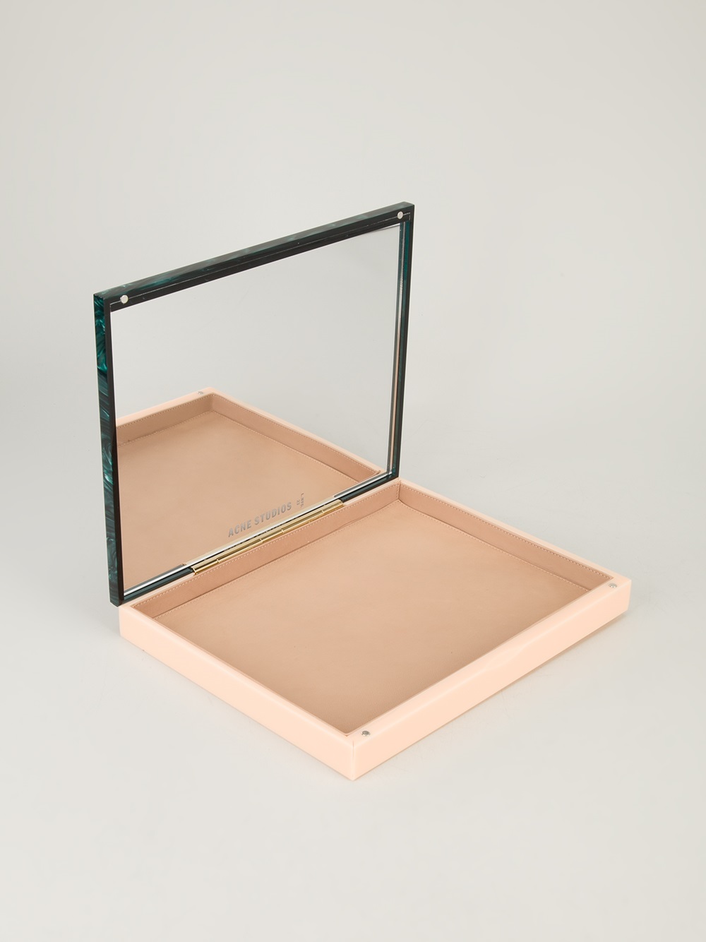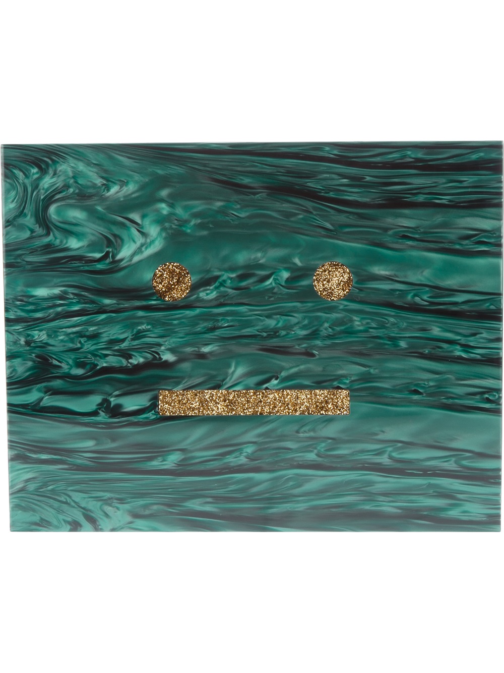 Jade green 'vanessa' box clutch from acne featuring a magnetic fastening, gold-tone glitter detailing on the front, a leather lining and an internal mirror. Colour: green