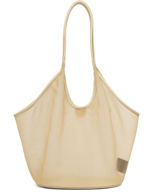 Sheer mesh tote. · Buffed calfskin trim throughout · Twin shoulder straps · Magnetic closure · Fits 13 laptop · H14 x W20 x D6.5 Supplier color: Mesh Butterscotch Colour: natural