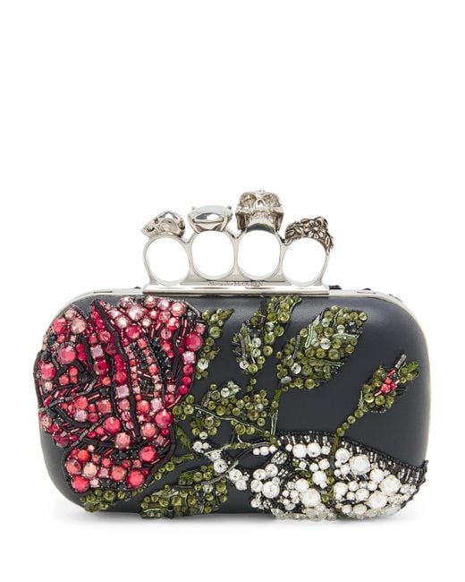 - Leather Embellished Skull Knuckle Clutch Bag