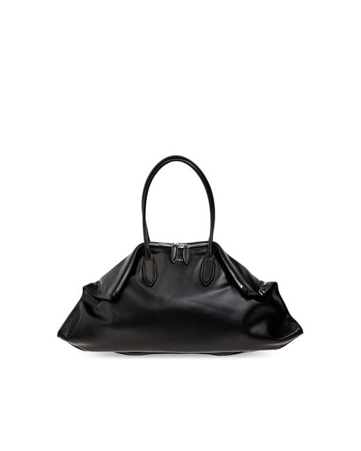 marks the product at the top edge of the bag. WHY BUY THIS PRODUCT? * Unique, designer shape inspired by nature * Crafted from exclusive, smooth genuine leather * Functionality thanks to its spacious maxi silhouette * Striking details: silver zipper and subtle logo * Versatility and timeless elegance of black Colour: black