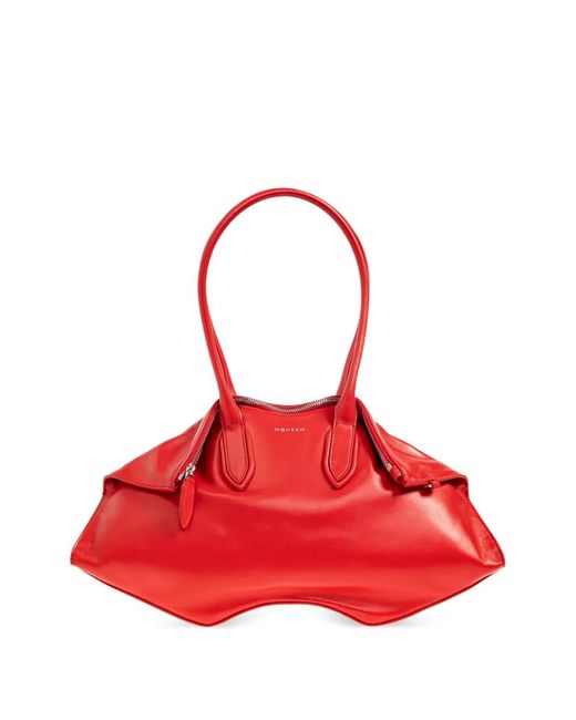 Red top zip fastening two long top handles geometric shape internal slip pocket Size: One Size. Gender: Female. Material:Calf Leather/Canvas. Colour: red