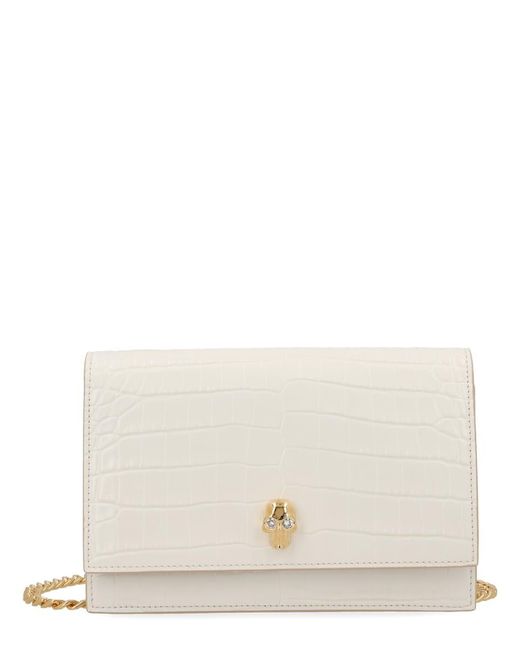 Small Croc-Embossed Skull Cross-Body Bag - Pink