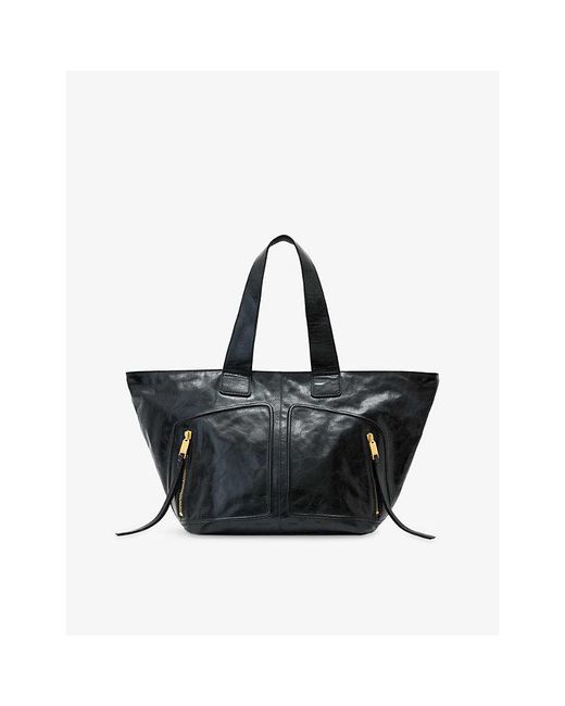 AllSaints leather bag100% leatherZip fasteningDouble shoulder strap, two zipped pockets at the front, gold-toe hardware, one main compartmentDimensions: Height 31cm, depth 22cmSpecialist leather clean Colour: black