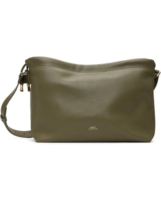 Recycled faux-leather shoulder bag. · Detachable and adjustable shoulder strap · Logo printed at face · Drawstring and magnetic closure · Patch pocket at interior · Cotton twill lining · Gold-tone hardware · H7” x W12” x D5” Supplier color: Kaki Militaire Colour: green
