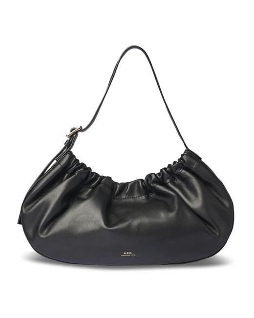 A.p.c. Ninon Hoop Bag pairs a ruched, crescent silhouette with a distinctive hoop detail for a sculptural shoulder bag that holds daily essentials with refined ease. Key attributes: Black | Polyurethane | Adjustable shoulder strap | Magnetic interior closure | One interior pocket | Ruched crescent silhouette | Rounded shape | Hoop handle detail | Gold-tone logo and hardware | Dimensions & fit: Height: 19 cm | Width: 35 cm | Depth: 8 cm | One size | Composition & care: 55% polyurethane, 40% polyester, 5% calcium carbonate | Wipe with a soft, dry cloth. Colour: black