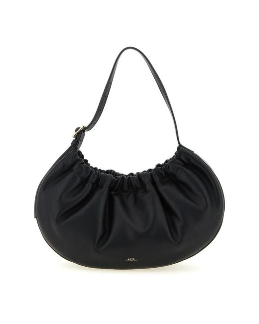A.p.c. Ninon Hoop Bag pairs a sculptural hoop handle with a ruched, softened silhouette for a refined everyday shoulder bag. Designed for polished, practical wear, it features a magnetic closure and adjustable handle for versatile carrying. Key attributes: Black | Soft cowhide leather | Adjustable handle | Inner magnetic closure | Interior pocket | Hoop handle | Top curl | Front embossed logo | Ruched silhouette | Dimensions & fit: W 33 x H 18 x D 8 cm | Composition & care: Soft cowhide leather | Cotton lining | Wipe with a soft, dry cloth. Colour: black