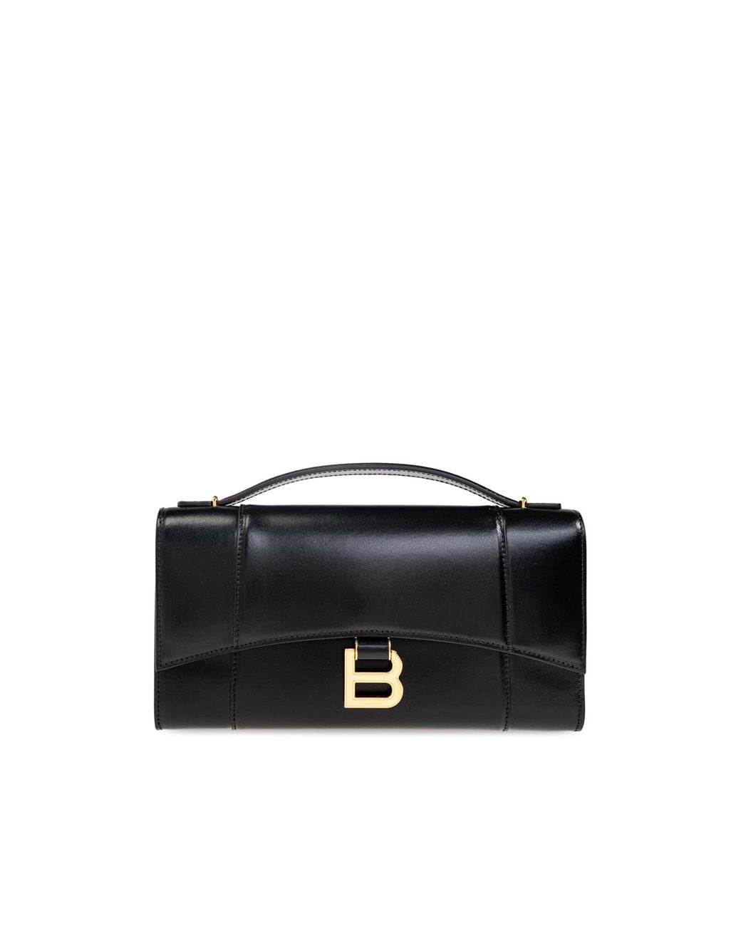 finishes and a short, rigid handle make this bag a symbol of luxury