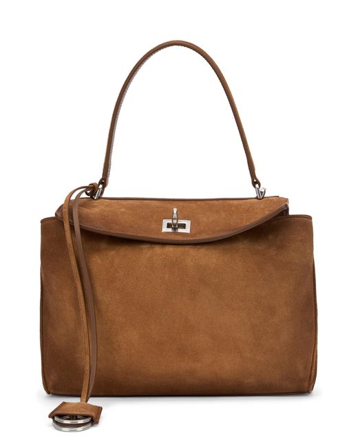 Elegant camel-colored leather bag designed for a sophisticated and versatile look. It features a front closure with an elegant button, a single handle, and a removable shoulder strap for practical use. The spacious interior offers ample capacity, while the refined design makes it suitable for various occasions. Perfect for completing your everyday outfit or for special events. Length: 29 cm Height: 20 cm Depth: 10 cm Handle height: 18.5 cm Strap length: 56 cm 100% Calfskin, 100% Lambskin Le