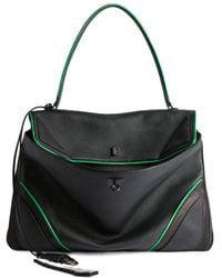 Go to BalenciagaRodeo biker handbag large in black and vivid green mix of calfskin and lambskin, brass hardware. Used effect on calfskin and lambskin • biker detailing• handbag• one handle • adjustable and removable webbing