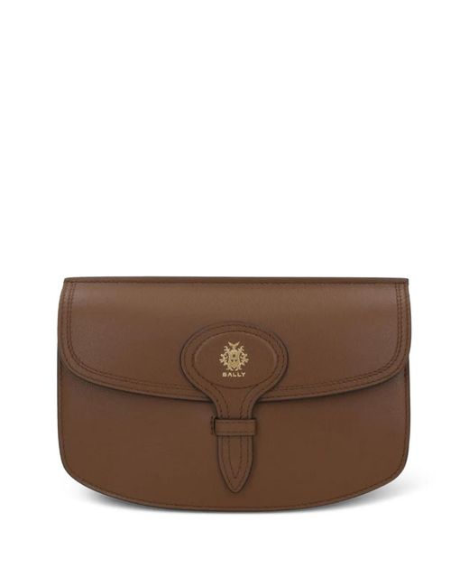 Brown grained texture top stitching gold-tone hardware adjustable shoulder strap logo plaque Size: One Size. Gender: Female. Material:Calf Leather. Colour: brown