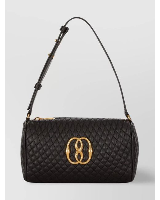 Women's Black Quilted Leather Shoulder Bag With Adjustable Strap