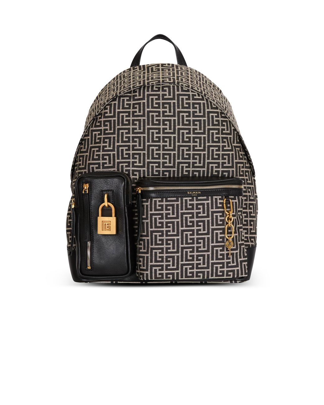 Pulse monogram jacquard backpackHandle and zipped double front pocketBackpack styleZip fasteningMetal keys and padlock with embossed PB logoEmbossed Balmain Paris logoLeather liningGold hardwareDimensions: 18 x 37.5 x 50 cmMain material: 63% polyester 37% cottonMade in ItalyItem: GM1GE276TJOL