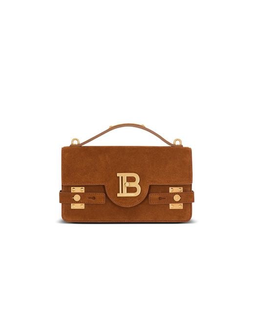 Suede B-Buzz Shoulder 24 bagCarry in the hand, on the shoulder or across the bodyLeather handle, Balmain-engraved plaqueAdjustable and removable leather shoulder strap with snap hooksFlap with quarter-turn B-Twist clasp2 interior compartmentsInside leather card pocket, embossed Balmain logoVintage gold hardwareDimensions: 24 x 4 x 14.5 cmShoulder strap: 110 cmMain material: 100% calfskinMade in ItalyItem: GN1DA828LSDL